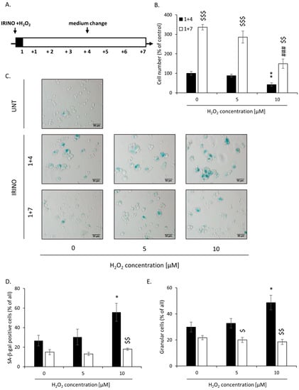 2.2. High H2O2 Level Leads to Escape from Senescence and Induces EMT