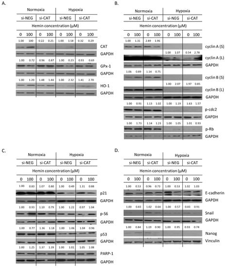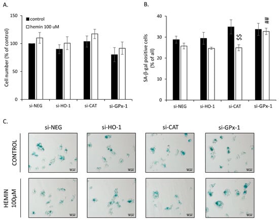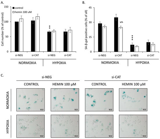 2.4. Hemin Enhances Escape from Senescence in Hypoxic Cells in the Presence of CAT