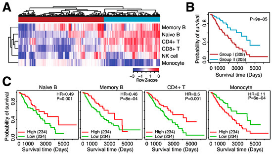 - Charoentong, P.; Finotello, F.; Angelova, M.; Mayer, C.; Efremova, M.; Rieder, D.; Hackl, H.; Trajanoski, Z. Pan-cancer Immunogenomic Analyses Reveal Genotype-Immunophenotype Relationships and Predictors of Response to Checkpoint Blockade. Cell Rep. 2017, 18, 248–262. [Google Scholar] [CrossRef]