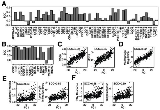 3.3. Microglia Infiltration Is Associated with the mRNA Expression of Immune Checkpoint Genes and Immune Regulatory Pathways