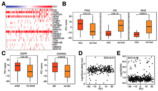 3.4. Microglia Infiltration Is Associated with Specific Genomic Alterations