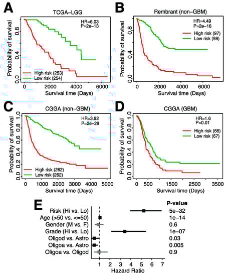 - Cancer Genome Atlas Research Network. Comprehensive, Integrative Genomic Analysis of Diffuse Lower-Grade Gliomas. N. Engl. J. Med. 2015, 372, 2481–2498. [Google Scholar] [CrossRef] [PubMed]