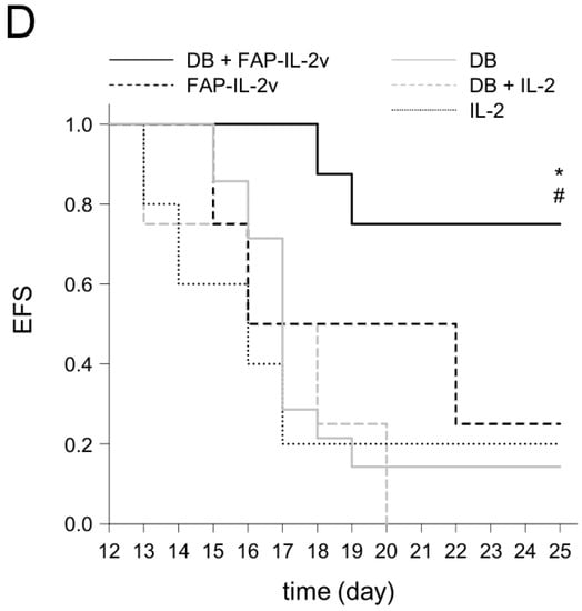 2.8. Evaluation of Antitumor Effects of Combinatorial Immunotherapy with DB and FAP-IL-2v