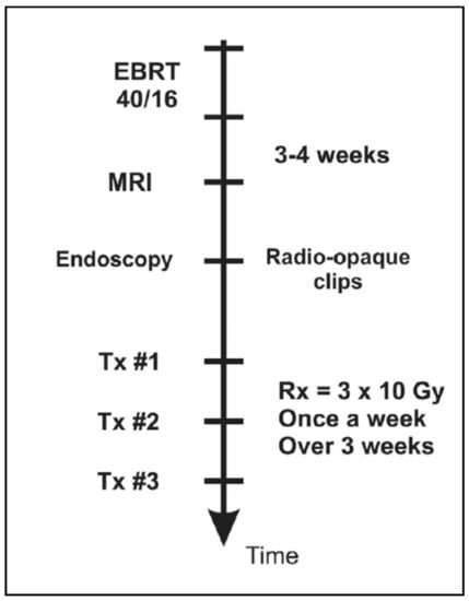 - Rijkmans, E.; van Triest, B.; Nout, R.; Kerkhof, E.; Buijsen, J.; Rozema, T.; Franssen, J.; Velema, L.; Laman, M.; Cats, A.; et al. Evaluation of clinical and endoscopic toxicity after external beam radiotherapy and endorectal brachytherapy in elderly patients with rectal cancer treated in the HERBERT study. Radiother. Oncol. 2018, 126, 417–423. [Google Scholar] [CrossRef]