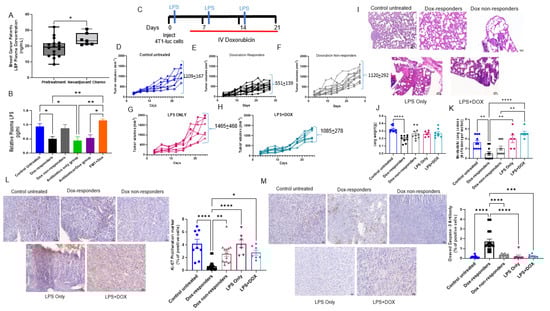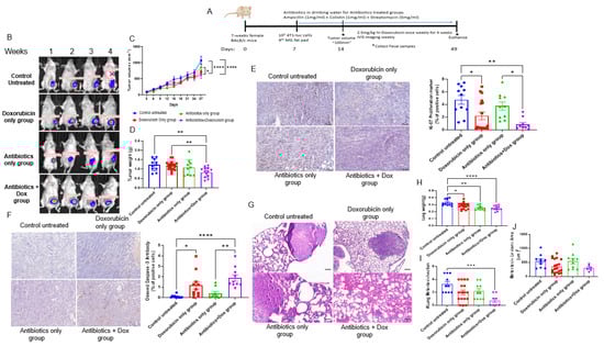 3.1. Antibiotics Administration Impacted TNBC Dox Responsiveness and Lung Metastasis Formation