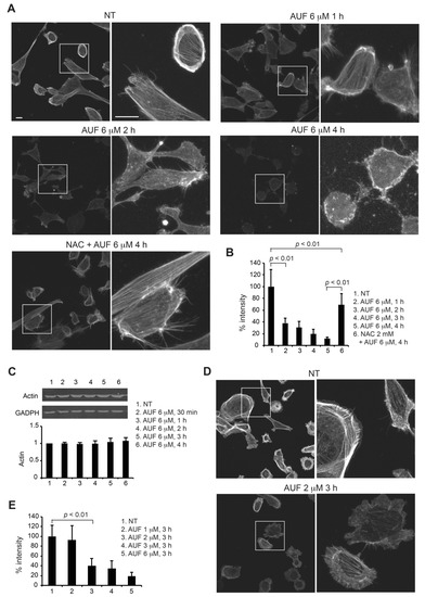 3.6. AUF Treatment Induces a Rapid Disintegration of the Actin Cytoskeleton Structure