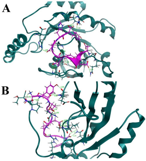 - Khan, A.; Umbreen, S.; Hameed, A.; Fatima, R.; Zahoor, U.; Babar, Z.; Waseem, M.; Hussain, Z.; Rizwan, M.; Zaman, N. In silico mutagenesis-based remodelling of SARS-CoV-1 Peptide (ATLQAIAS) to Inhibit SARS-CoV-2: Structural-dynamics and free energy calculations. Interdiscip. Sci. Comput. Life Sci. 2021, 13, 521–534. [Google Scholar] [CrossRef]