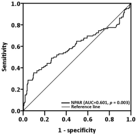 SPSS (v. 21.0; SPSS, Chicago, IL, USA) was employed for the statistical analyses performed in this study. After examining data normality through the Kolmogorov–Smirnov test, we present normally and nonnormally distributed continuous variables and categorical variables as means and standard deviations, medians and interquartile ranges (IQRs), and numbers and percentages, respectively. The optimal NPAR cutoff was determined by conducting receiver operating characteristic (ROC) curve analyses and calculating the areas under the ROC curves (AUCs). Patients were then divided into groups based on this cutoff and the survival in the low-NPAR and high-NPAR groups were compared by using log-rank tests. Cox proportional-hazards models were used to estimate the predictive ability of each clinicopathological variable for DFS and OS. The findings are presented in terms of hazard ratios (HRs) with 95% confidence intervals (CIs). In the multivariate analysis, we included all factors with a p of <0.1 in the univariate analysis and considered only two-sided p values of <0.05 to indicate statistical significance in the final model.