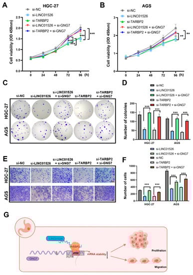 Zhou J-Y, Liu J-Y, Tao Y, Chen C, Liu S-L. LINC01526 Promotes Proliferation and Metastasis of Gastric Cancer by Interacting with TARBP2 to Induce GNG7 mRNA Decay. Cancers. 2022; 14(19):4940. https://doi.org/10.3390/cancers14194940