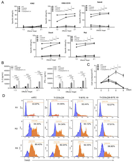 3.5. T-CD3εζ28-BiTE.19 Cells Exhibited Superior Killing Effects on Cancer Cells