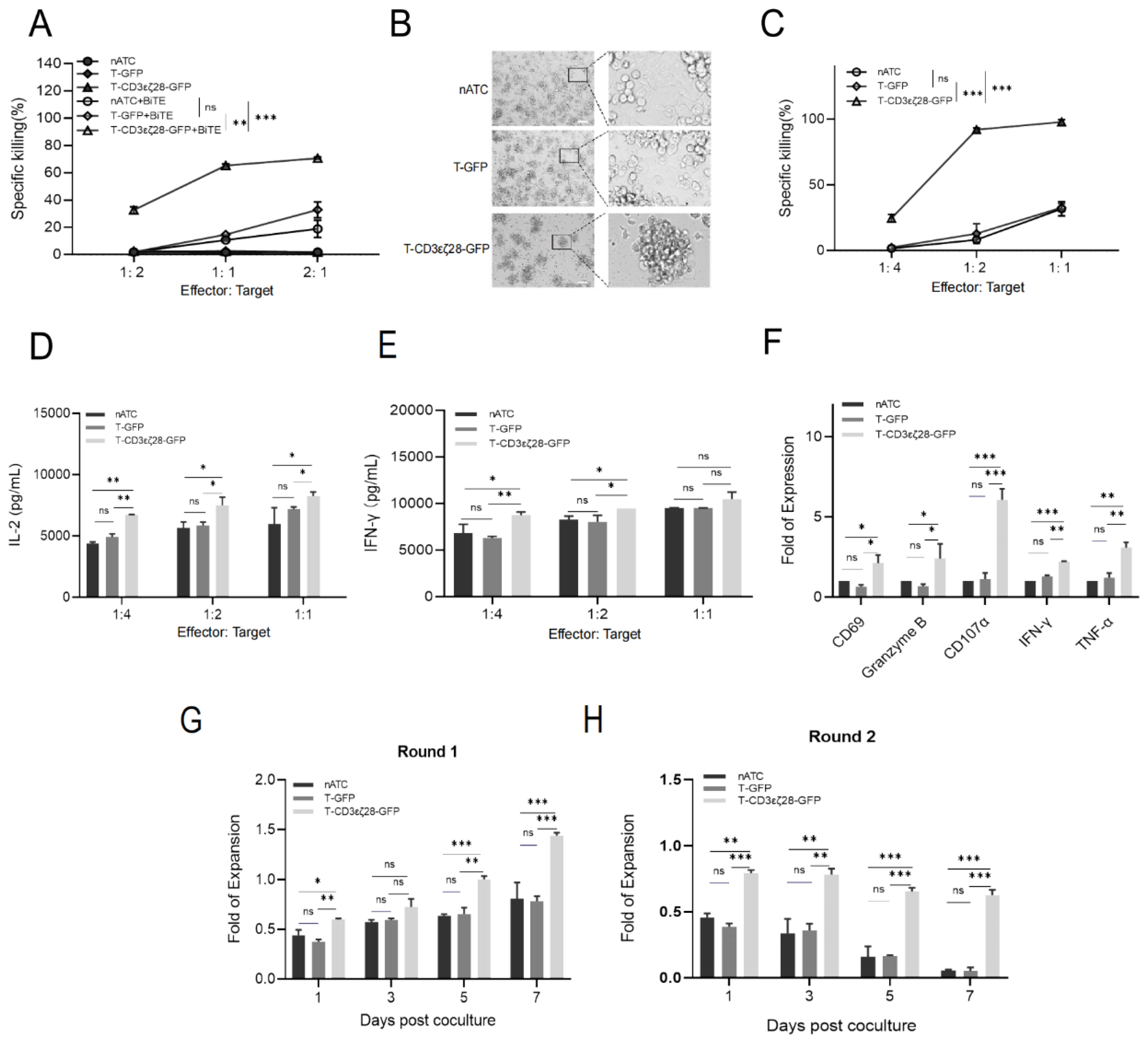 3.2. Combining T-CD3εζ28-GFP with BiTEs Exhibited Synergistic Killing Effects on Tumor Cells