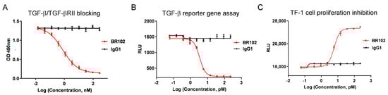 Chicago/Turabian StyleWu, Zhen-Hua, Na Li, Zhang-Zhao Gao, Gang Chen, Lei Nie, Ya-Qiong Zhou, Mei-Zhu Jiang, Yao Chen, Juan Chen, Xiao-Fen Mei, and et al. 2022. "Development of the Novel Bifunctional Fusion Protein BR102 That Simultaneously Targets PD-L1 and TGF-β for Anticancer Immunotherapy" Cancers 14, no. 19: 4964. https://doi.org/10.3390/cancers14194964