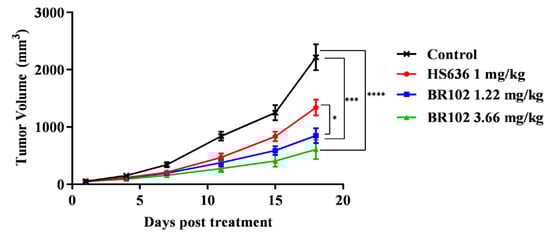 3.5. BR102 Treatment Inhibits Tumor Growth In Vivo
