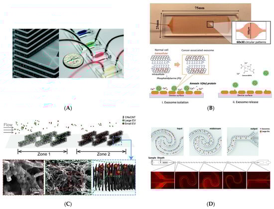 - Zhang, P.; Wu, X.; Gardashova, G.; Yang, Y.; Zhang, Y.; Xu, L.; Zeng, Y. Molecular and functional extracellular vesicle analysis using nanopatterned microchips monitors tumor progression and metastasis. Sci. Transl. Med. 2020, 12, 2878. [Google Scholar] [CrossRef]