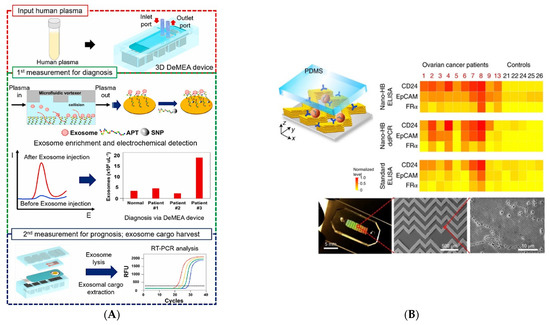 - Zhang, P.; Zhou, X.; He, M.; Shang, Y.; Tetlow, A.L.; Godwin, A.K.; Zeng, Y. Ultrasensitive detection of circulating exosomes with a 3D-nanopatterned microfluidic chip. Nat. Biomed. Eng. 2019, 3, 438–451. [Google Scholar] [CrossRef]