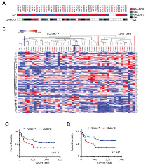 - Xue, X.; Zeng, N.; Gao, Z.; Du, M.Q. Diffuse large B-cell lymphoma: Sub-classification by massive parallel quantitative RT-PCR. Lab. Investig. A J. Tech. Methods Pathol. 2015, 95, 113–120. [Google Scholar] [CrossRef]