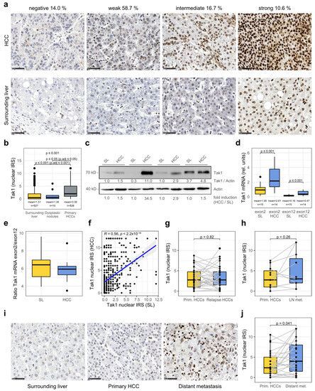 3.1. Tak1 Is Induced in Hepatocellular Carcinoma and Further Increased in Distant Metastases