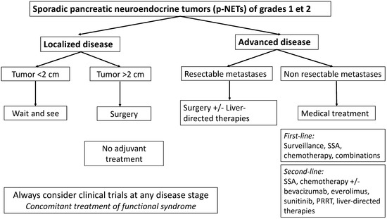 We propose the following therapeutic algorithm for the management of p-NET G1/G1 (Figure 1).