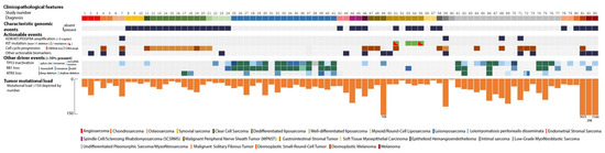 Molecular profiling of sarcomas substantially aids pathological assessment, illustrated by several histological (sub)types that are characterized by diagnostic genomic events. For example, MDM2 amplification is present in most dedifferentiated liposarcomas and typically co-amplified with CDK4 and/or HMGA2, synovial sarcomas (SS) are often characterized by SS18–SSX fusions, and presence of MYOD1 mutations indicate spindle cell/sclerosing rhabdomyosarcoma [2,3]. While dedicated molecular assays are being used when specific diagnoses are being considered, extensive molecular profiling is not applied for all sarcoma patients. Immunohistological assessment alone results in misdiagnosis in 14% of sarcoma cases, also when the pathologist indicated to be confident on the initial diagnosis [4]. However, even with the opportunity to perform molecular profiling as part of the regular diagnostic workup, pathologists and oncologists are faced with the challenge to request the appropriate diagnostic test for the right patient. Consequently, diagnostic genomic events remain unnoticed, and unbiased whole-genome sequencing (WGS) led to diagnostic revisions in 3% of sarcoma cases that already received a full diagnostic workup [5].