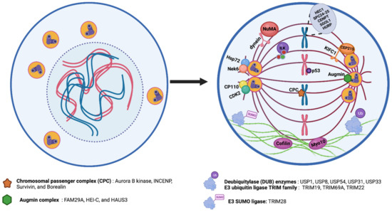 - Carmena, M.; Wheelock, M.; Funabiki, H.; Earnshaw, W.C. The chromosomal passenger complex (CPC): From easy rider to the godfather of mitosis. Nat. Rev. Mol. Cell Biol. 2012, 13, 789–803. [Google Scholar] [CrossRef]
