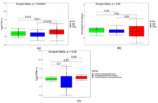 - Skubitz, K.M.; Skubitz, A. Differential gene expression in leiomyosarcoma. Cancer 2003, 98, 1029–1038. [Google Scholar] [CrossRef]