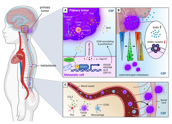 - Li, M.; Deng, Y.; Zhang, W. Molecular Determinants of Medulloblastoma Metastasis and Leptomeningeal Dissemination. Mol. Cancer Res. 2021, 19, 743–752. [Google Scholar] [CrossRef]