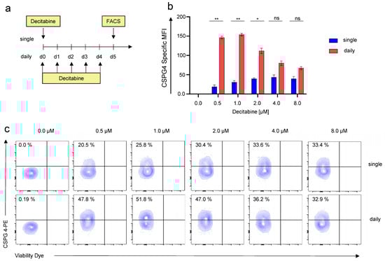 3.2. Daily Application of Decitabine Mediates Superior Upregulation of CSPG4 on SKOV-3 Ovarian Cancer Cells