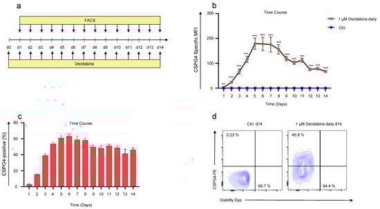 Chicago/Turabian StyleHarrer, Dennis Christoph, Charlotte Schenkel, Carola Berking, Wolfgang Herr, Hinrich Abken, Jan Dörrie, and Niels Schaft. 2022. "Decitabine-Mediated Upregulation of CSPG4 in Ovarian Carcinoma Cells Enables Targeting by CSPG4-Specific CAR-T Cells" Cancers 14, no. 20: 5033. https://doi.org/10.3390/cancers14205033