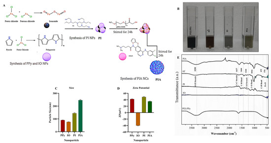 - Lett, J.A.; Sagadevan, S.; Alshahateet, S.F.; Murugan, B.; Jasni, A.H.; Fatimah, I.; Hossain, M.M.; Mohammad, F.; Oh, W.C. Synthesis and characterization of polypyrrole-coated iron oxide nanoparticles. Mater. Res. Express 2021, 8, 025007. [Google Scholar] [CrossRef]