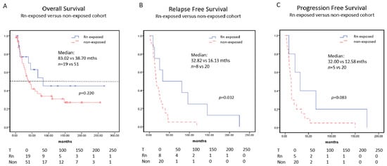 | Rn-Exposed LC Cohort n = 20 | Non-Exposed LC Cohort n = 52 | |
