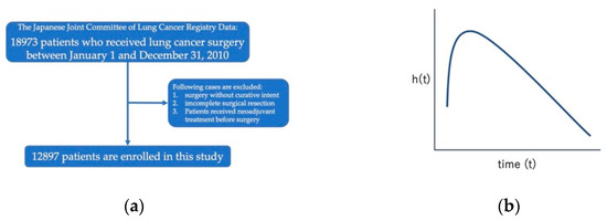(a) Study flowchart. (b) Model of hazard function curve.