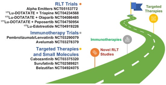 - La Salvia, A.; Espinosa-Olarte, P.; Riesco-Martinez, M.D.C.; Anton-Pascual, B.; Garcia-Carbonero, R. Targeted cancer therapy: What’s new in the field of neuroendocrine neoplasms? Cancers 2021, 13, 1701. [Google Scholar] [CrossRef] [PubMed]