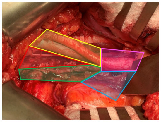 Taking into consideration cN+ patients, the utility of lymphadenectomy remains a controversial topic. Currently, the standard treatment for patients with MIBC is RC with PLND with neoadjuvant chemotherapy [6]. As already stated, LNI is one of the most important prognostic factors, next to the local advancement, in BCa patients [11,91]. Consequently, PLND is inextricably linked with RC, as imaging techniques are poor nodal staging tools [92]. However, the therapeutic effect of PLND remains debatable. The available publications emphasize the oncological benefits of PLND during RC compared to its absence [93,94,95,96,97]. As of now, the ePLND remains the gold standard template. Several studies have been conducted on the oncological outcomes of the super-extended template, though none of them showed benefits in RFS, DSS, or OS [98,99,100]. A thorough presentation of the ePLND and sePLND extents with specific LN groups is illustrated in Figure 1. Figure 2 illustrates the anatomical compartments of PLND performed during the surgical procedure.