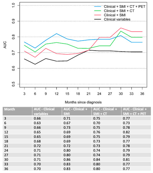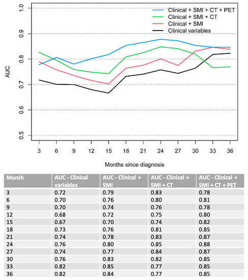 Chicago/Turabian StyleHinzpeter, Ricarda, Seyed Ali Mirshahvalad, Roshini Kulanthaivelu, Claudia Ortega, Ur Metser, Zhihui A. Liu, Elena Elimova, Rebecca K. S. Wong, Jonathan Yeung, Raymond Woo-Jun Jang, and et al. 2022. "Prognostic Value of [18F]-FDG PET/CT Radiomics Combined with Sarcopenia Status among Patients with Advanced Gastroesophageal Cancer" Cancers 14, no. 21: 5314. https://doi.org/10.3390/cancers14215314