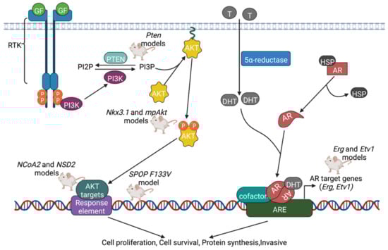 PCa knockout models driven by AR and PI3K signaling pathways are displayed in Figure 3.