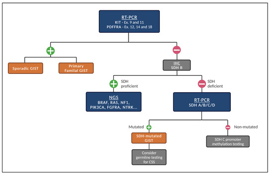 Given the different subtypes of GISTs, we recommend the following stepwise fashion of testing (Figure 1) whenever systemic treatment is indicated and next-generation sequencing (NGS) is not promptly available.