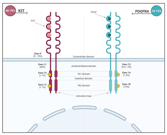 Location and frequencies of most common KIT and PDGFRA mutations.