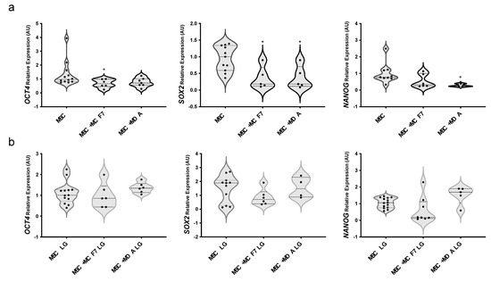 - Tsai, C.C.; Su, P.F.; Huang, Y.F.; Yew, T.L.; Hung, S.C. Oct4 and Nanog directly regulate Dnmt1 to maintain self-renewal and undifferentiated state in mesenchymal stem cells. Mol. Cell 2012, 47, 169–182. [Google Scholar] [CrossRef]