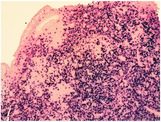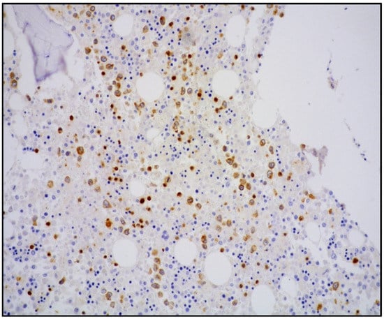 BM involvement may occur during the course of the disease, and HLH syndrome represents a serious complication often developing in cases with BM involvement []. Systemic symptoms such as fever and weight loss may be present.