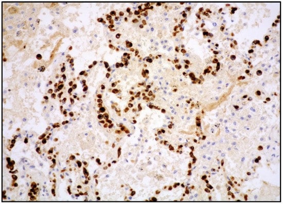 In the majority of cases, there is a strong association with EBV infection and diffuse positive staining with in situ hybridization for EBV-encoded RNA (EBER) (Figure 5).