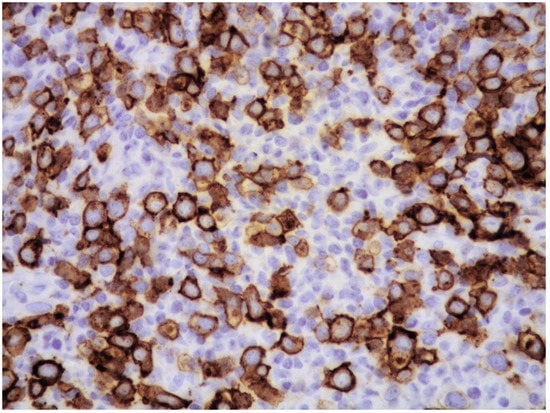 - Sakakibara, A.; Kohno, K.; E Eladl, A.; Klaisuwan, T.; Ishikawa, E.; Suzuki, Y.; Shimada, S.; Nakaguro, M.; Shimoyama, Y.; Takahara, T.; et al. Immunohistochemical assessment of the diagnostic utility of PD-L1: A preliminary analysis of anti-PD-L1 antibody (SP142) for lymphoproliferative diseases with tumour and non-malignant Hodgkin-Reed-Sternberg (HRS)-like cells. Histopathology 2018, 72, 1156–1163. [Google Scholar] [CrossRef]