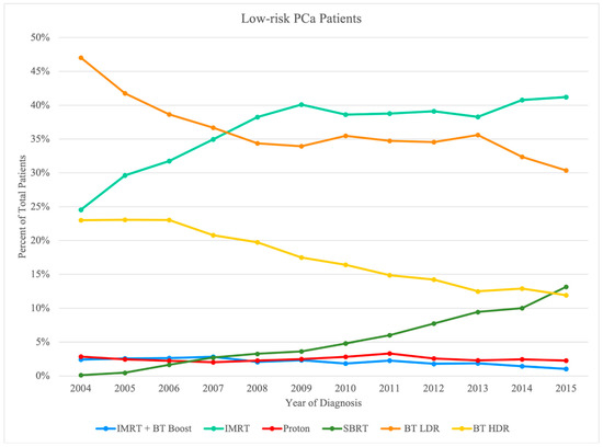 Pattern of utilization of radiation therapy modality for low-risk PCa by treatment modality.