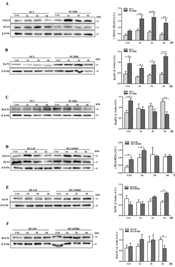 3.2. PC3RR and DU-145RR Cells More Efficiently Repair DNA Damage and Differently Activate an Anti-Apoptotic Pathway after Radiotherapy