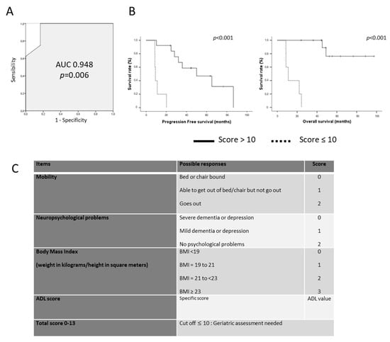 | ADL (<6 vs. 6) | <0.001 | 0.002 | 14.97 (2.73–81.95) | <0.001 | 0.010 | 21.56 (2.11–219.86) |
