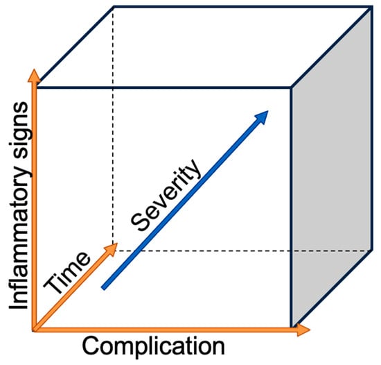 Severity of the complication in relation to the time and the inflammatory reaction.