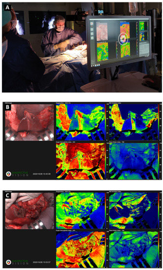 - Barberio, M.; Felli, E.; Seyller, E.; Longo, F.; Chand, M.; Gockel, I.; Geny, B.; Swanström, L.; Marescaux, J.; Agnus, V.; et al. Quantitative fluorescence angiography versus hyperspectral imaging to assess bowel ischemia: A comparative study in enhanced reality. Surgery 2020, 168, 178–184. [Google Scholar] [CrossRef]