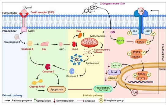 - Bhat, A.A.; Prabhu, K.S.; Kuttikrishnan, S.; Krishnankutty, R.; Babu, J.; Mohammad, R.M.; Uddin, S. Potential therapeutic targets of Guggulsterone in cancer. Nutr. Metab. 2017, 14, 23. [Google Scholar] [CrossRef]