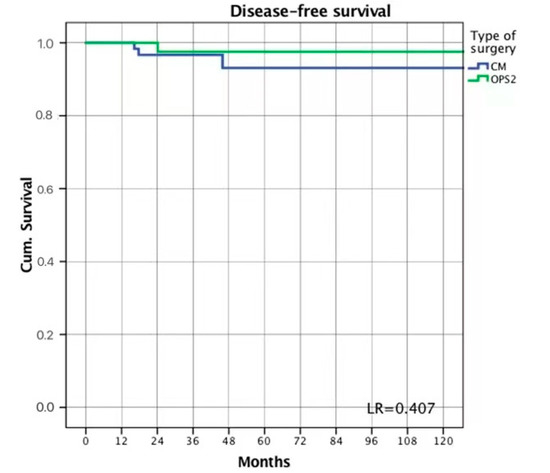 | Oncological Outcomes | Conservative Mastectomy | Level II Oncoplastic Surgery | p Value |