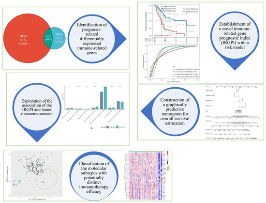 Due to the development of bioinformatic analytics, gene signatures identified from diverse representative gene sets of well-defined tumor stages are increasingly accepted as novel tumor marker candidates. In the most recent decade, various newly defined cell death mechanisms such as ferroptosis and pyroptosis are expected to offer new insights into cancer development and cures [17,18,19]. Therefore, gene signatures derived from these two groups for prognostic prediction are “hot” research topics. On the other hand, tumor immunology, serving as the basis for immunotherapy which is proven to be successful in certain cancer types, was investigated to a much more limited degree in gene signature development, particularly in PAAD [20,21]. Therefore, the present study established a novel immune-related gene prognostic index (IRGPI) for overall survival (OS) estimation for PAAD patients, and explored more precise molecular subtypes in PAAD, together with corresponding immune characteristics.