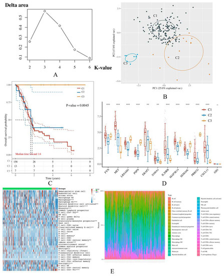 41. Wilkerson, D.M.; Hayes Neil, D. ConsensusClusterPlus: A class discovery tool with confidence assessments and item tracking. Bioinformatics 2010, 26, 1572–1573. Available online: http://bioinformatics.oxfordjournals.org/content/26/12/1572.abstract (accessed on 13 May 2022). [CrossRef]